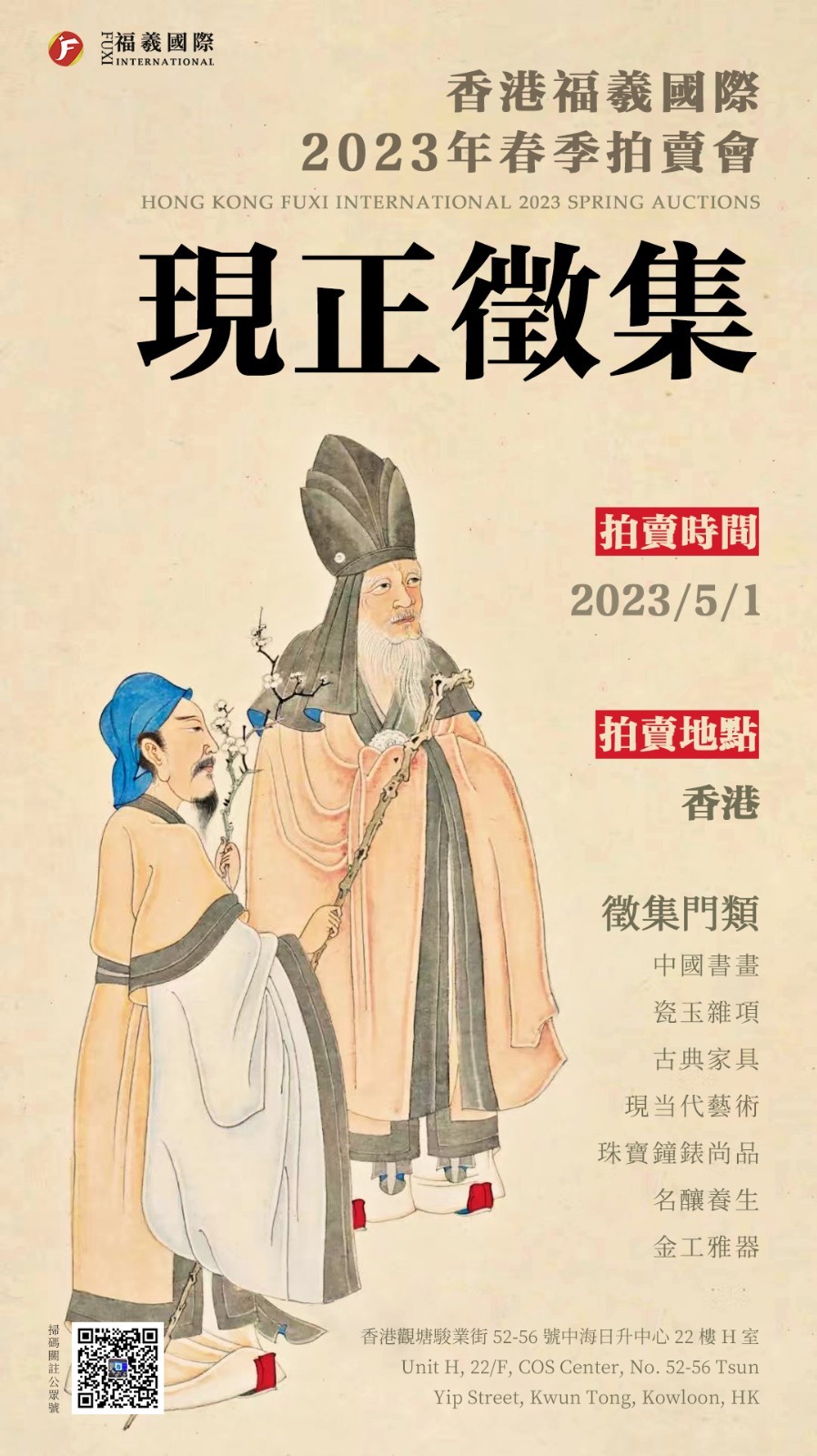 香港福羲国际2022年春季拍卖会将于2023年5月1日香港举办,拍品徵集活动已全面启动。将于2023年3月中旬截止,期待各位藏家朋友不吝赐宝,我们诚挚地邀请阁下拨冗莅临公司洽谈指导。